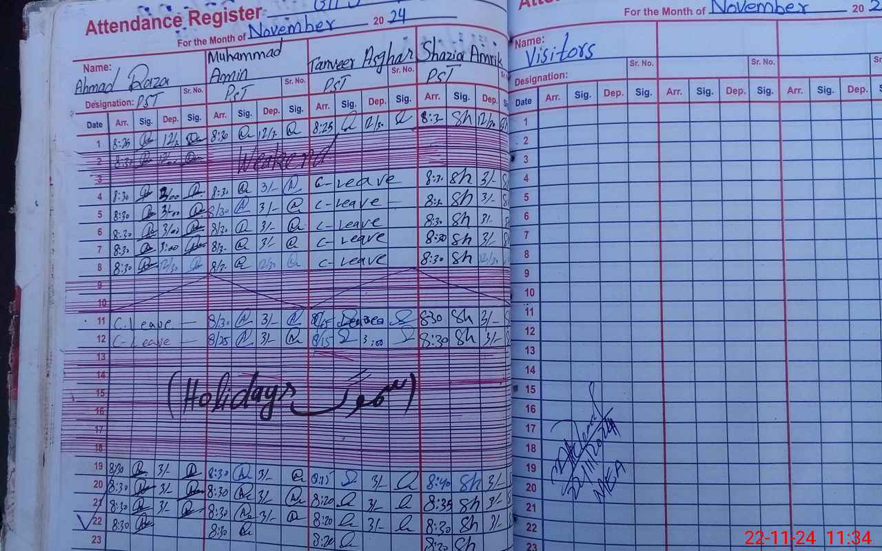 | Name: AH**** RA**** Designation: (School Headmaster's/Headmistress's) PST Phone/Cell Number: 03**** |