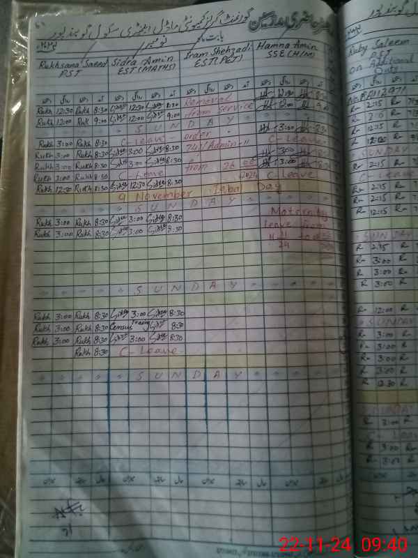 | CNIC | Full Name | Designation | R/C | Absence During Last Calender Month |
