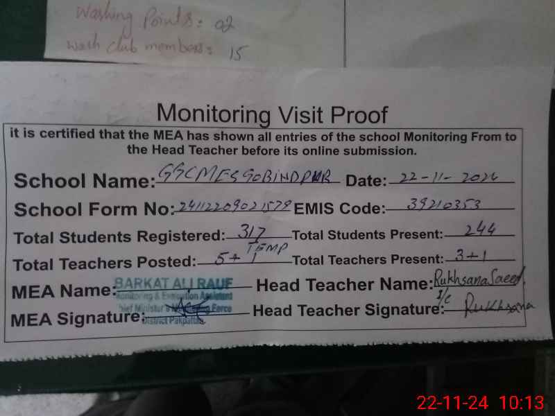 | EMIS Code: 39210353 | Name of School: GGCMES GOBIND PUR | |||
