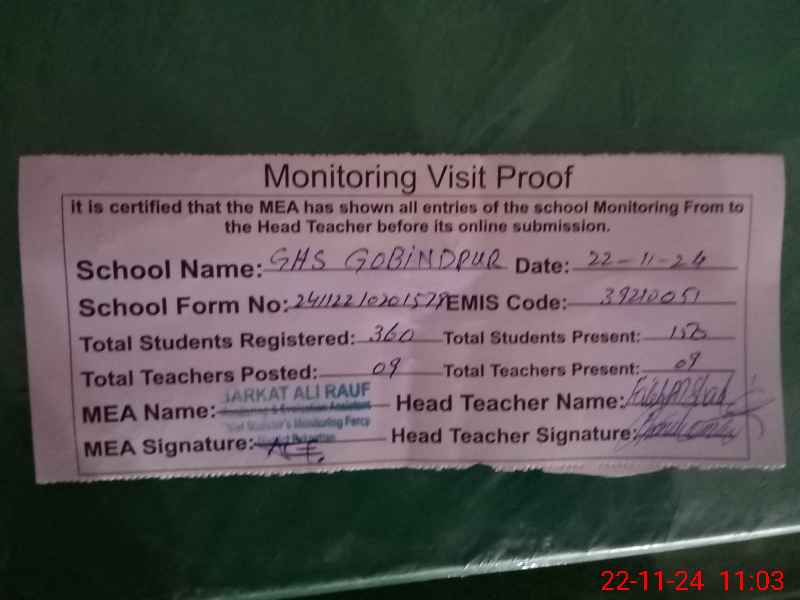 | EMIS Code: 39210051 | Name of School: GHS GOBIND PUR P/O GOBIND PUR | |||