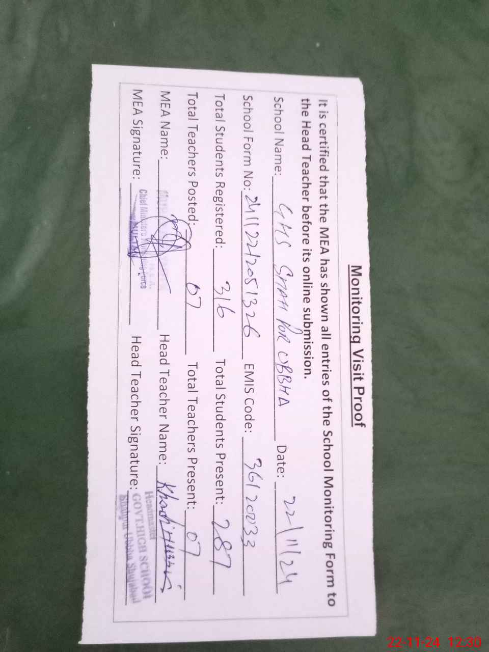 | EMIS Code: 36120033 | Name of School: GHS SHAH PUR UBBHA SHUJABAD | |||