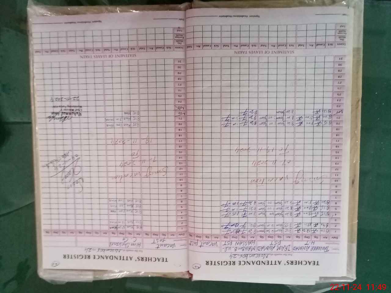 | CNIC | Full Name | Designation | R/C | Absence During Last Calender Month |