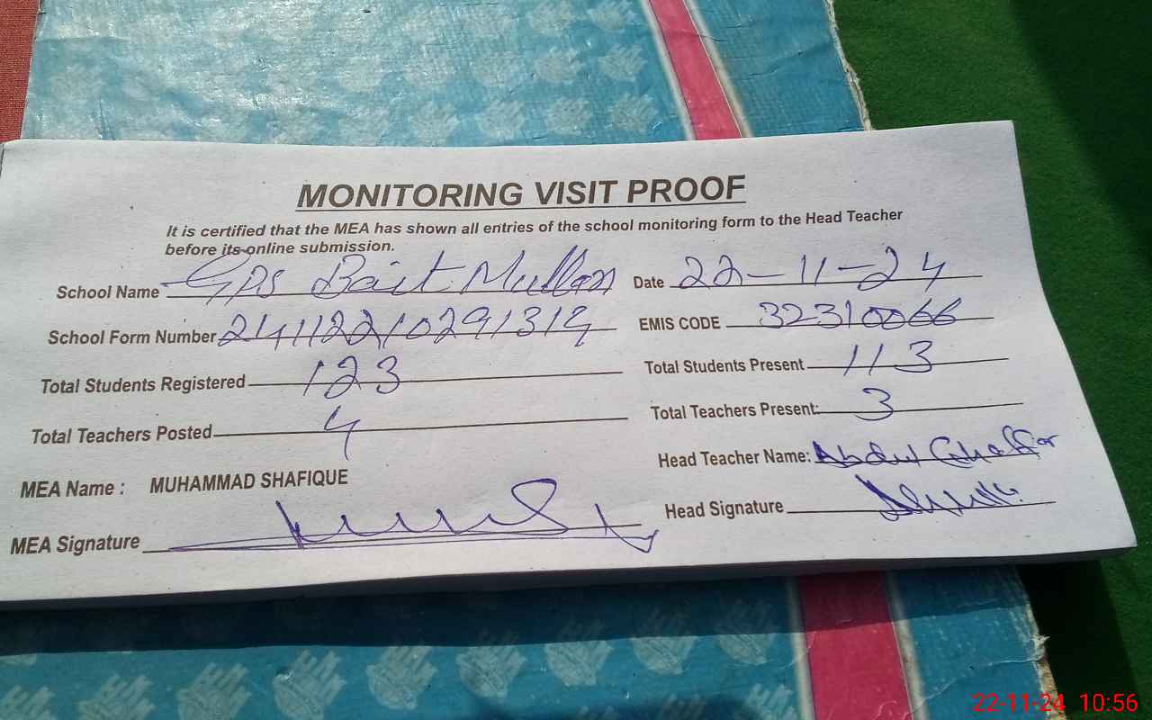 | EMIS Code: 32310066 | Name of School: GPS BAIT MULLAN WALI | |||