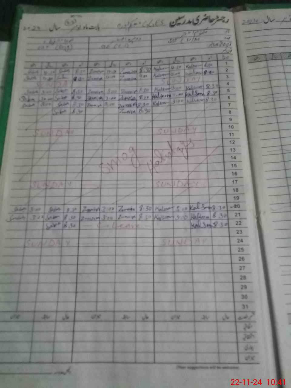 | CNIC | Full Name | Designation | R/C | Absence During Last Calender Month |