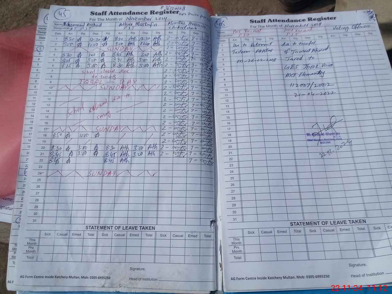 | Name: Mu**** Ar**** Designation: (School Headmaster's/Headmistress's) Pst Phone/Cell Number: 03**** |