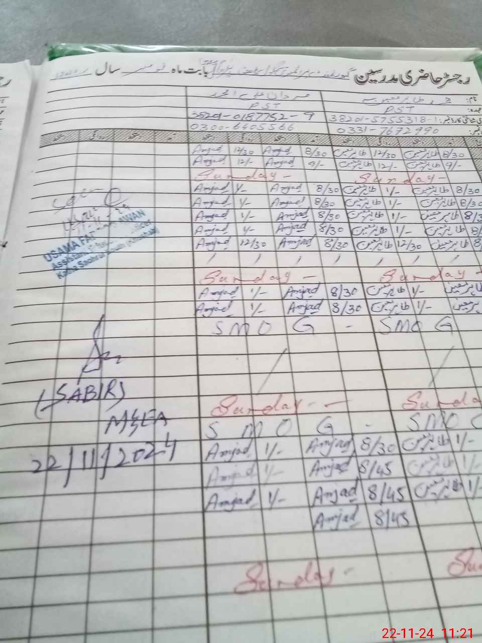 | CNIC | Full Name | Designation | R/C | Absence During Last Calender Month |