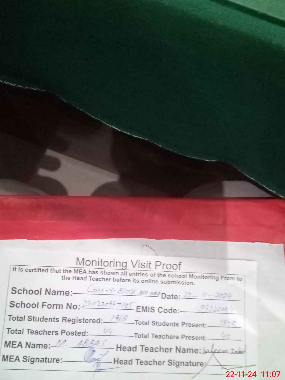 | Certified that this School was Inspected by the Undersigned MEA/DMO Today and the Information Stated Above is as Per Record. | |||||