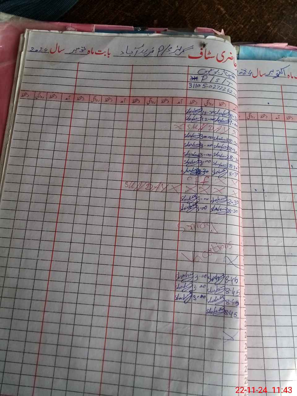 | CNIC | Full Name | Designation | R/C | Absence During Last Calender Month |
