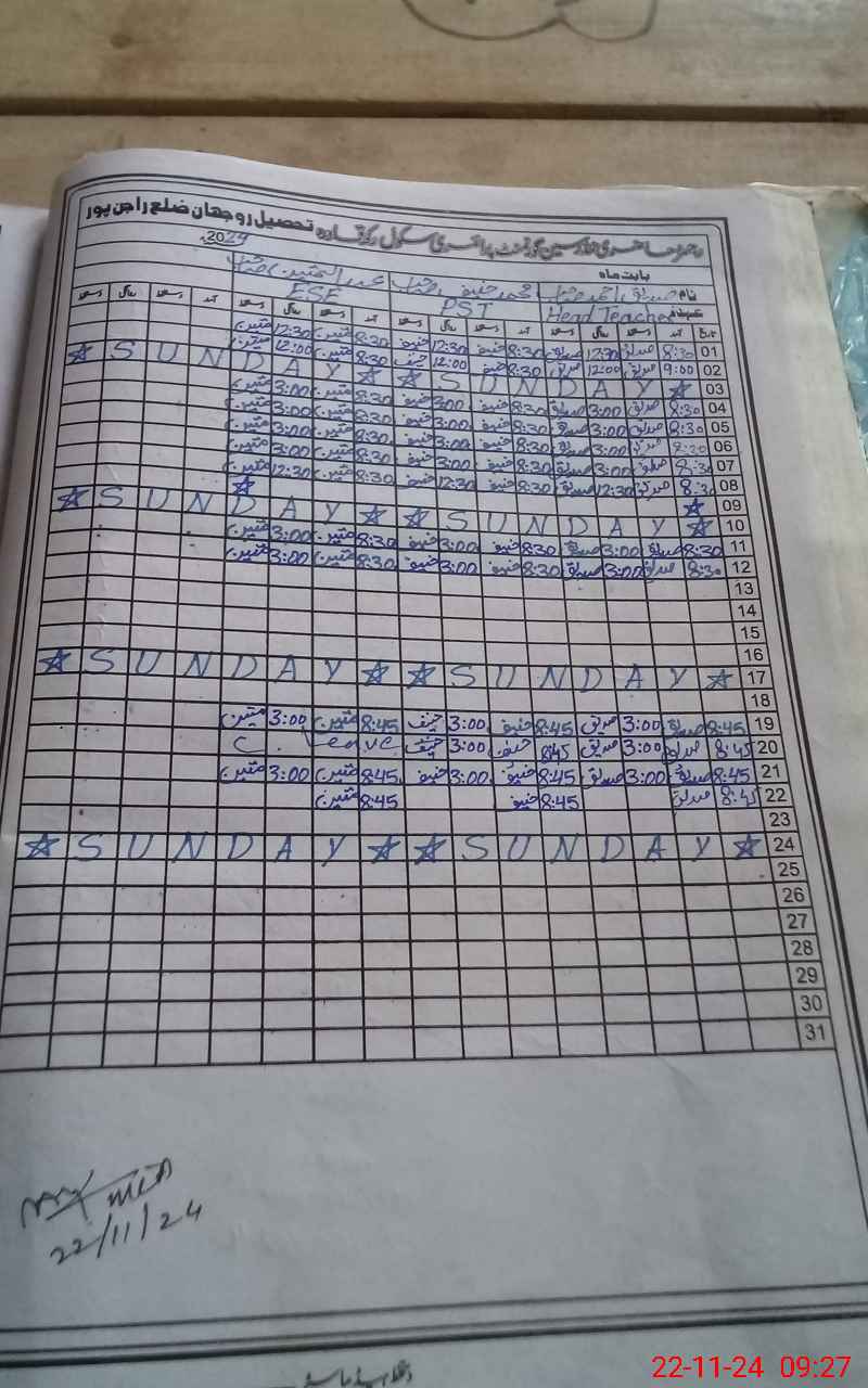 | District: RAJANPUR | Tehsil: ROJHAN | Markaz: GIYAMAL - MALE | Level: Primary | |
