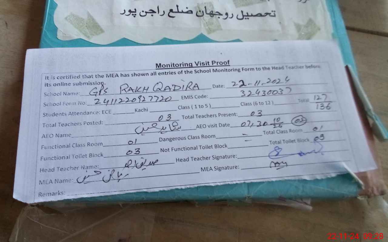 | EMIS Code: 32430037 | Name of School: GPS RAKH QADIRA | |||