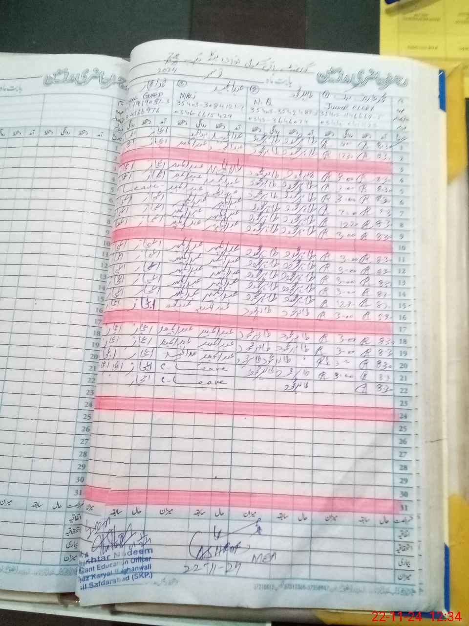 | CNIC | Full Name | Designation | R/C | Absence During Last Calender Month |