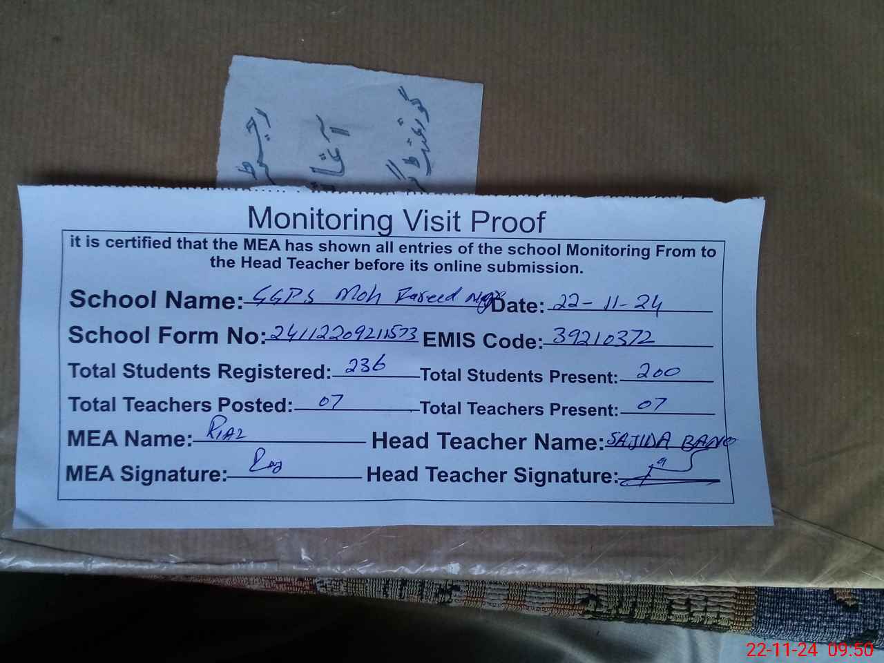 | EMIS Code: 39210372 | Name of School: GGPS MOHALLAH FAREED NAGAR | |||