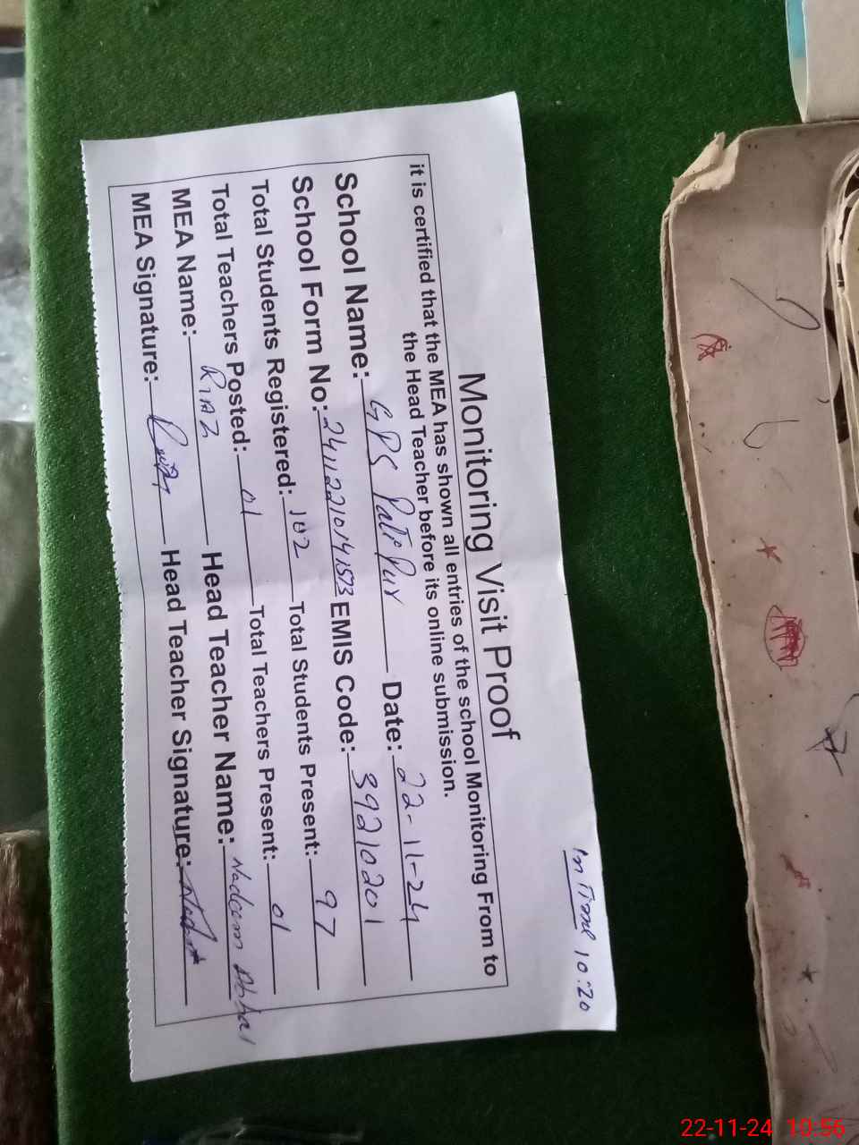 | EMIS Code: 39210201 | Name of School: GPS PATI PUR PO KUMHARI WALA PAKPATTAN | |||