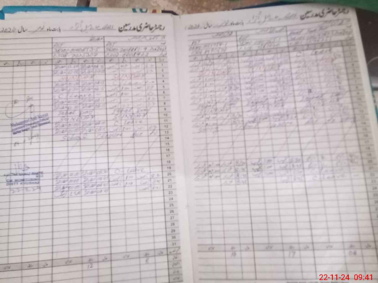 | CNIC | Full Name | Designation | R/C | Absence During Last Calender Month |