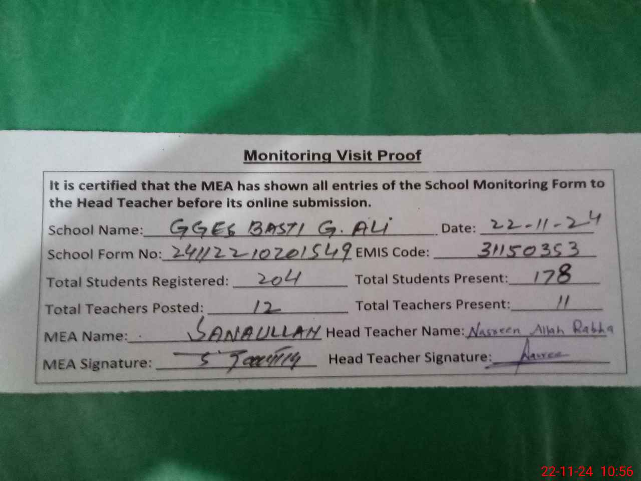 | EMIS Code: 31150353 | Name of School: GGES GHULAM ALI | |||