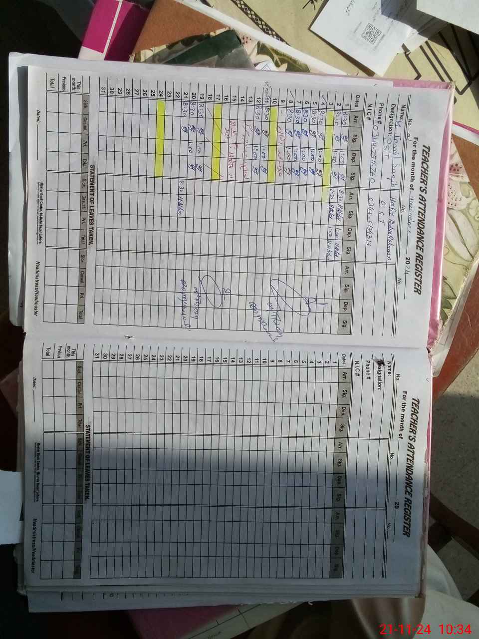 | Name: HA**** AB**** R,**** Designation: (School Headmaster's/Headmistress's) Headmaster Phone/Cell Number: 03**** |