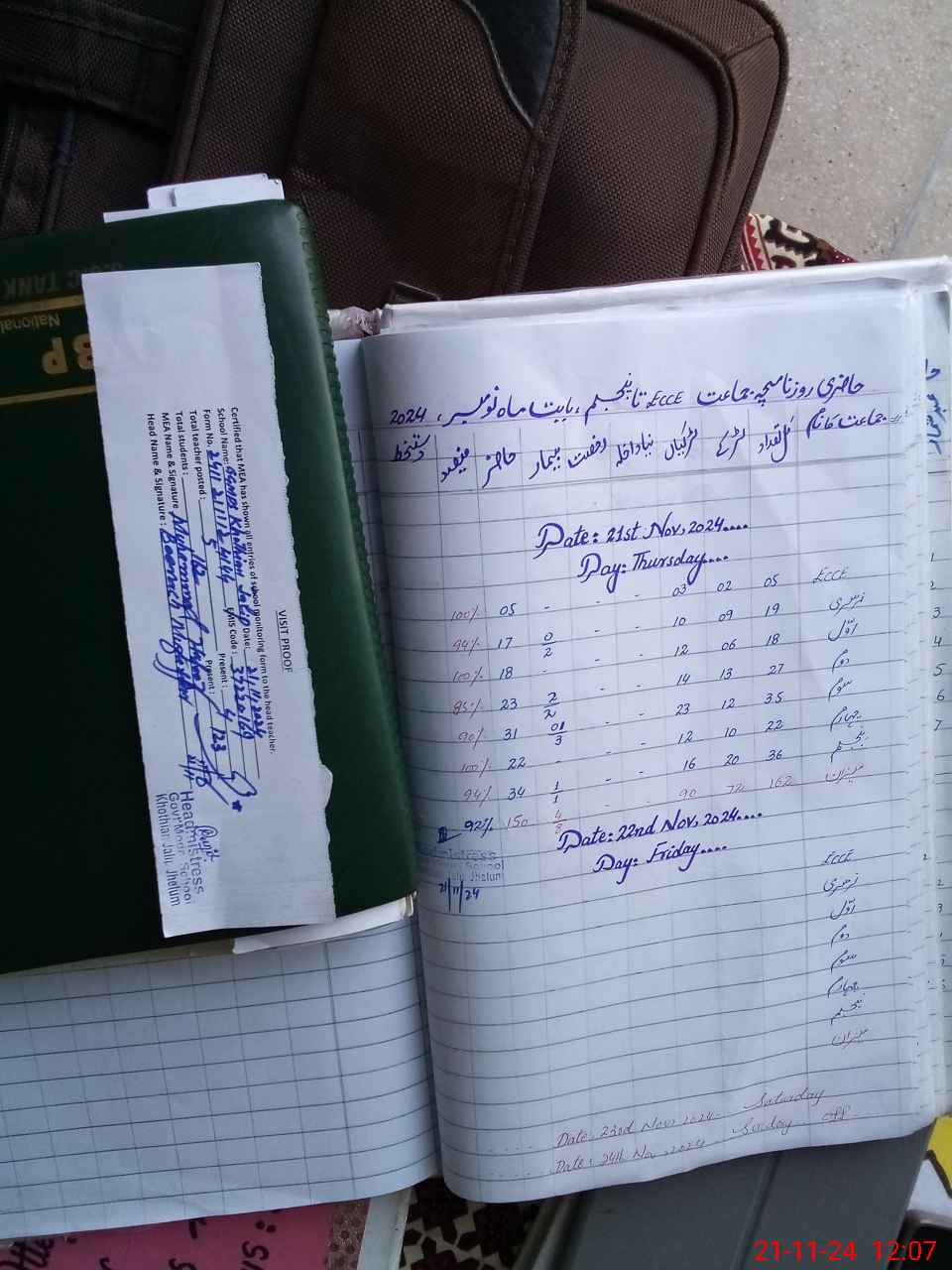 | Attendance Register | Head Teacher | MEA with School | Visit Proof |