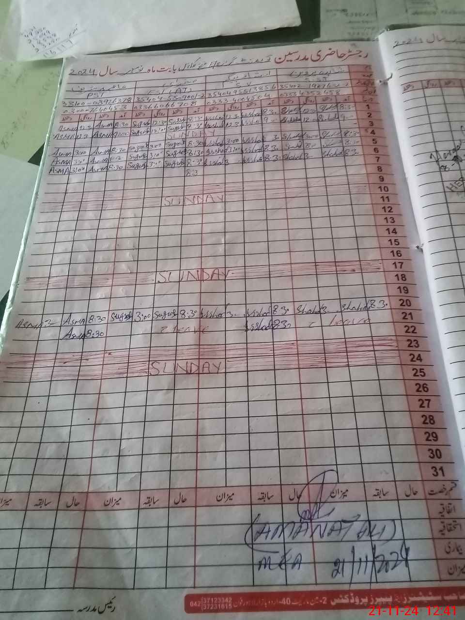 | CNIC | Full Name | Designation | R/C | Absence During Last Calender Month |