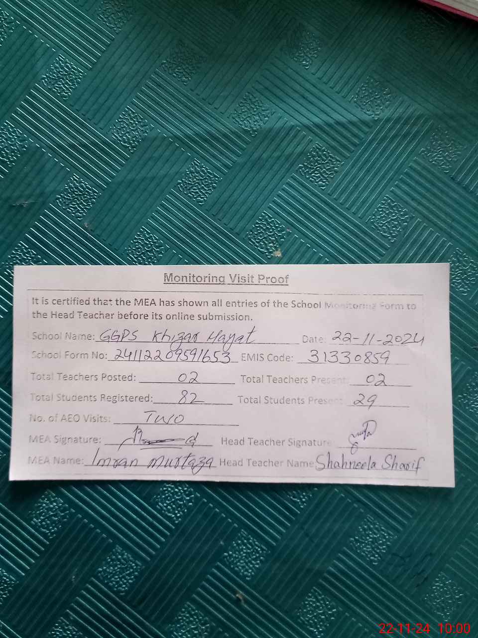 | EMIS Code: 31330859 | Name of School: GGPS KHYZER HAYAT | |||
