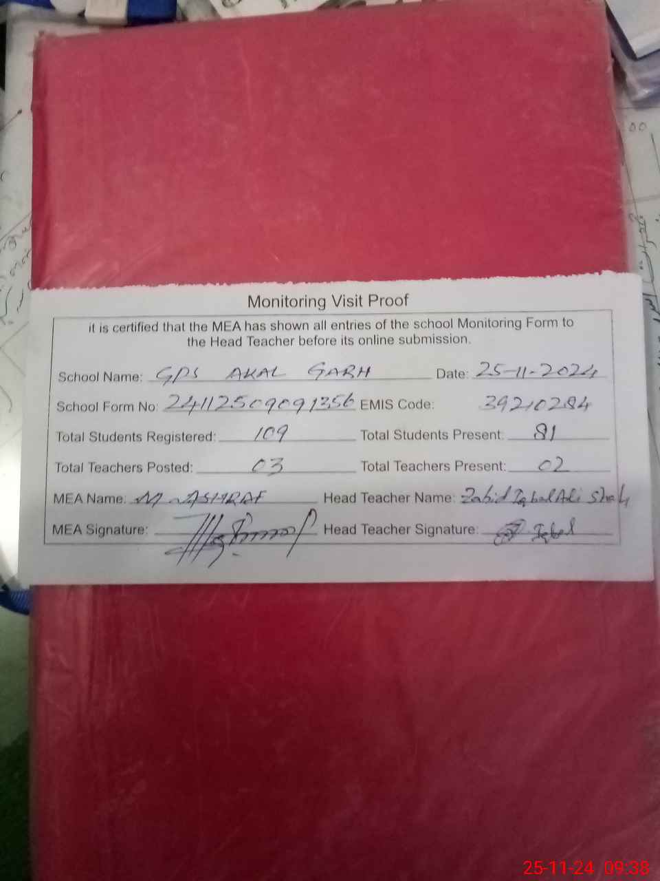 | EMIS Code: 39210284 | Name of School: GPS AKAL GARH P.O KARTAR PUR | |||