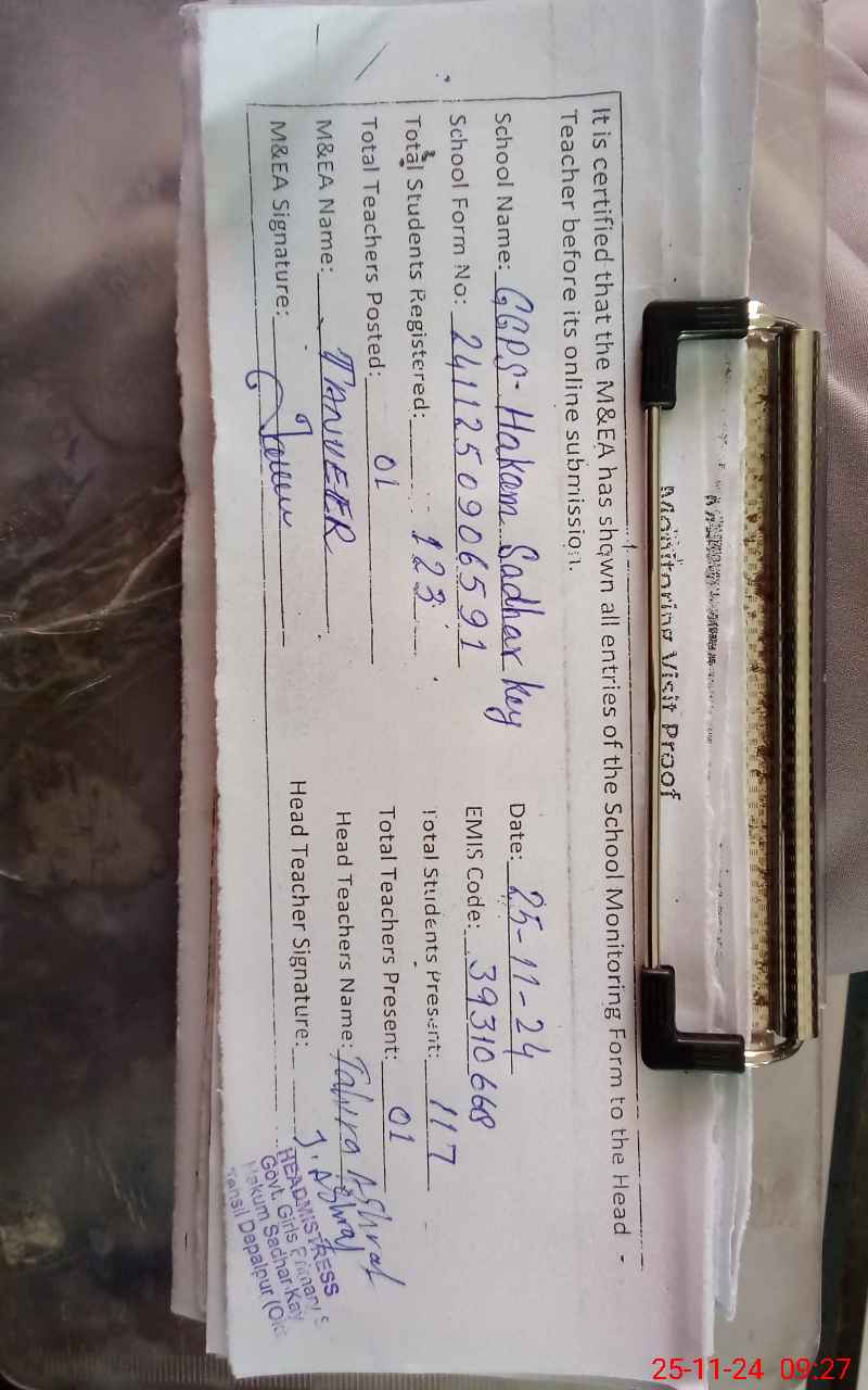 | EMIS Code: 39310668 | Name of School: GGPS HAKAM SADHAR KEY | |||