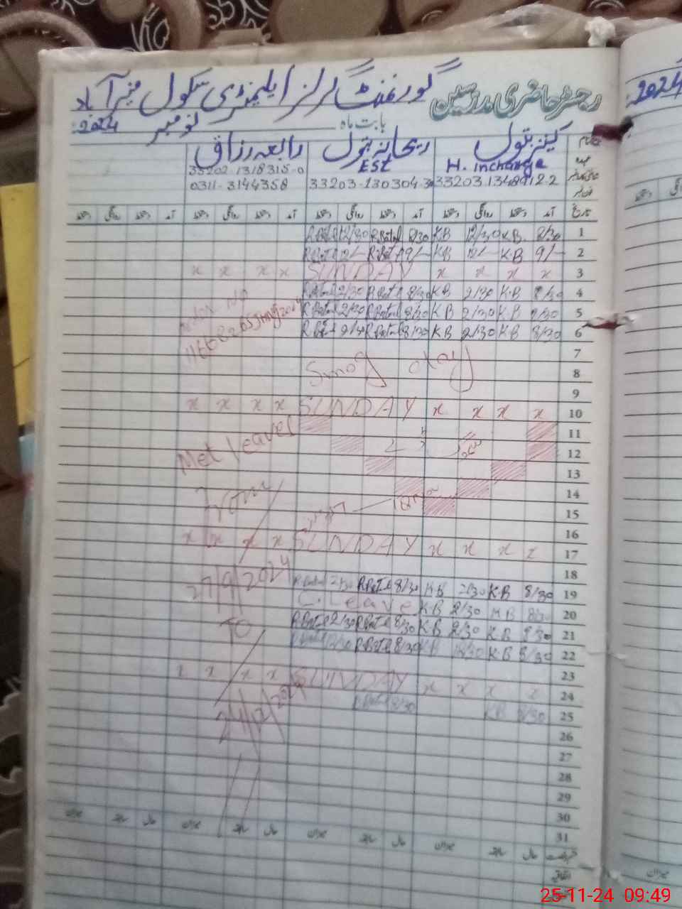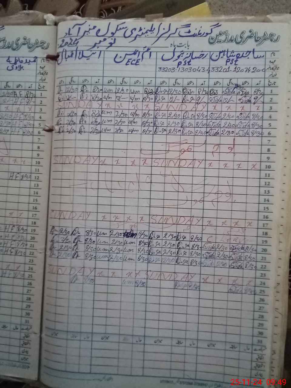| CNIC | Full Name | Designation | R/C | Absence During Last Calender Month |