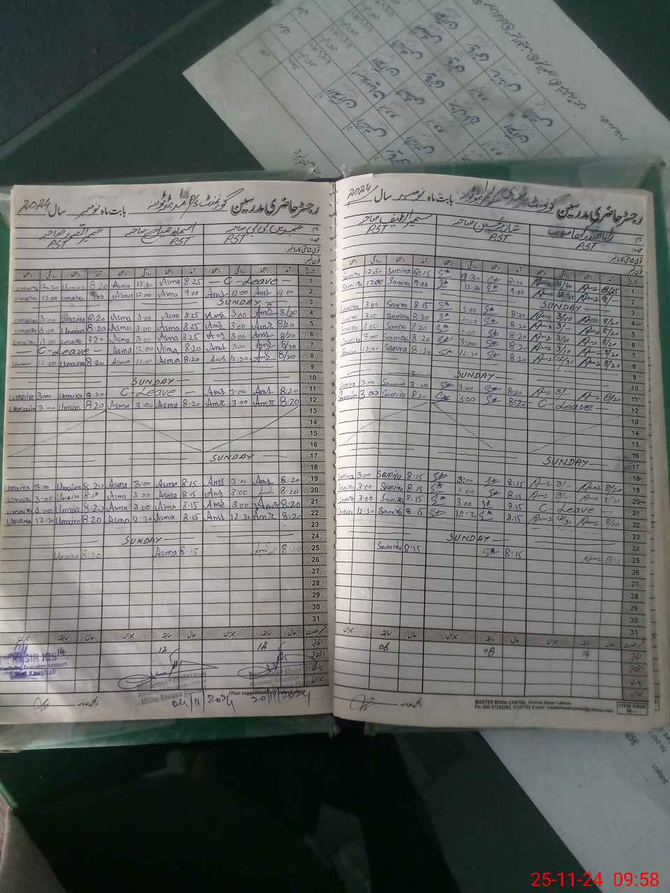 | CNIC | Full Name | Designation | R/C | Absence During Last Calender Month |
