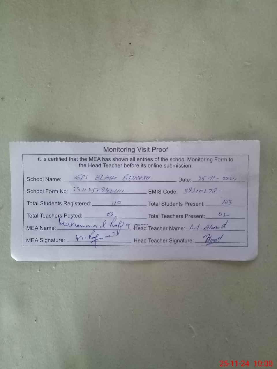 | EMIS Code: 39210278 | Name of School: GPS ELAHI BAKHSH | |||