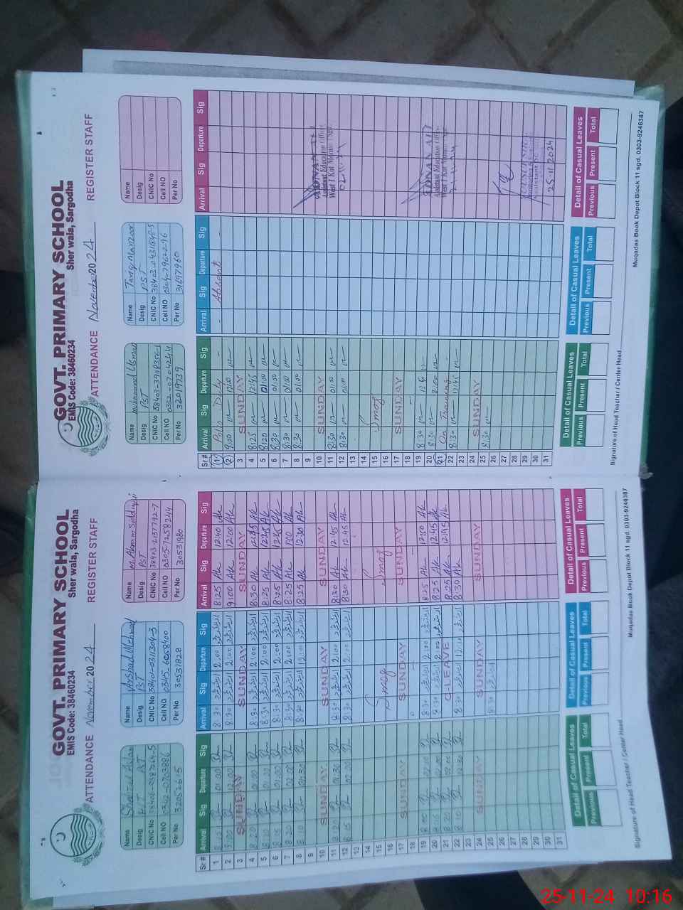 | Name: Sh**** As**** Designation: (School Headmaster's/Headmistress's) PST Phone/Cell Number: 03**** |