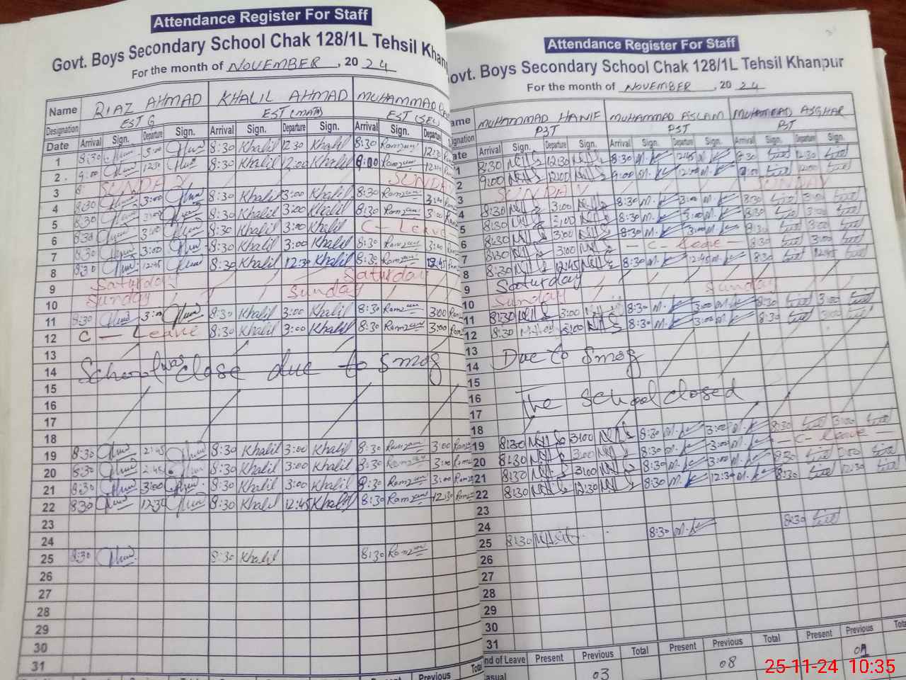 | CNIC | Full Name | Designation | R/C | Absence During Last Calender Month |