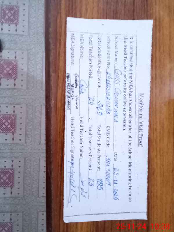 | EMIS Code: 38130009 | Name of School: GHSS GOHAR WALA | |||