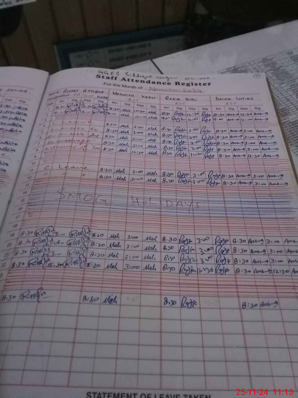 | CNIC | Full Name | Designation | R/C | Absence During Last Calender Month |