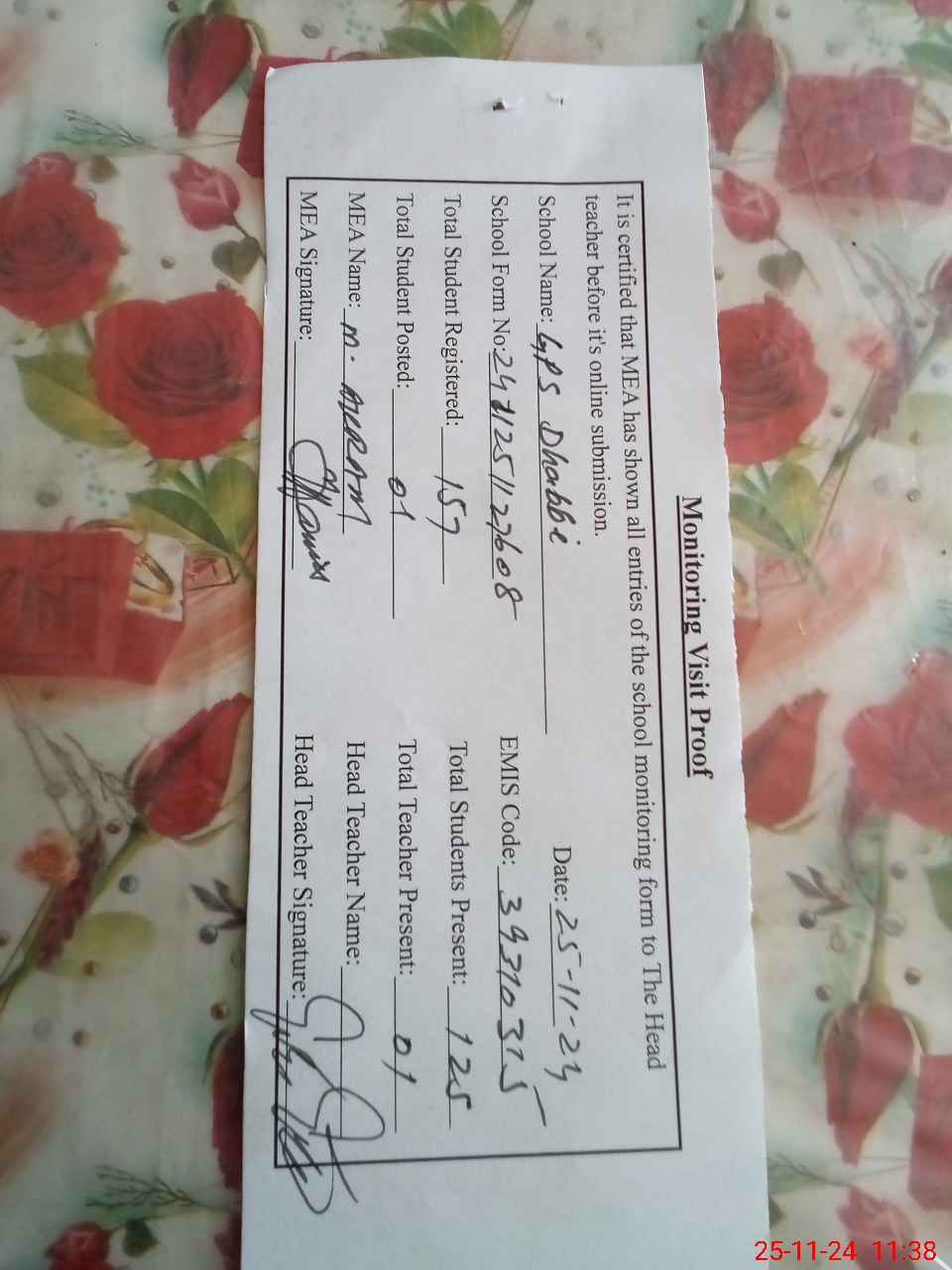 | EMIS Code: 39310315 | Name of School: GPS DHABBI | |||
