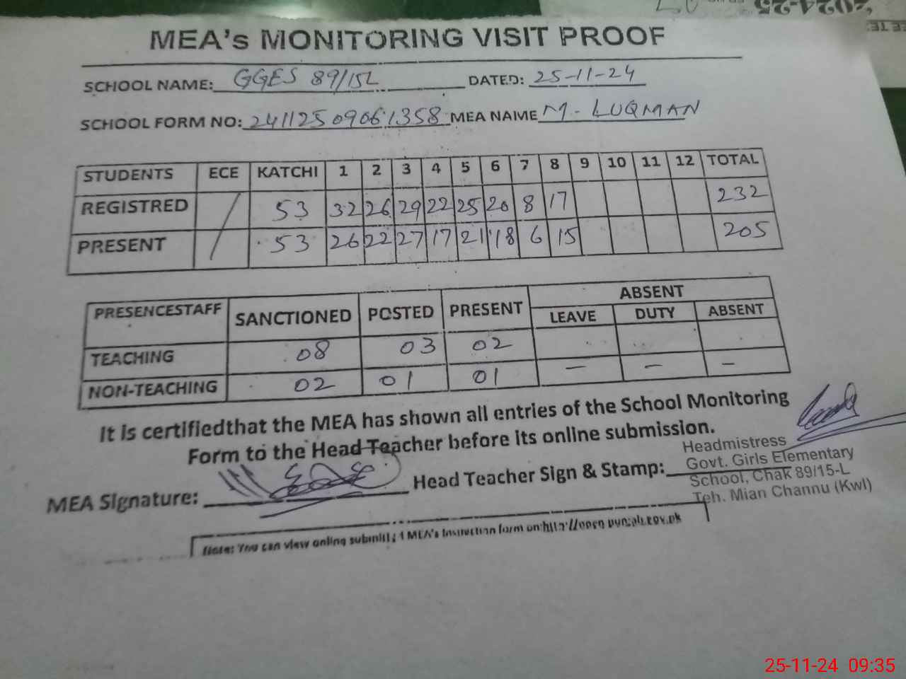 | EMIS Code: 36430312 | Name of School: GGES 89/15-L, P/O 87/15-L, MIAN CHANNU | |||