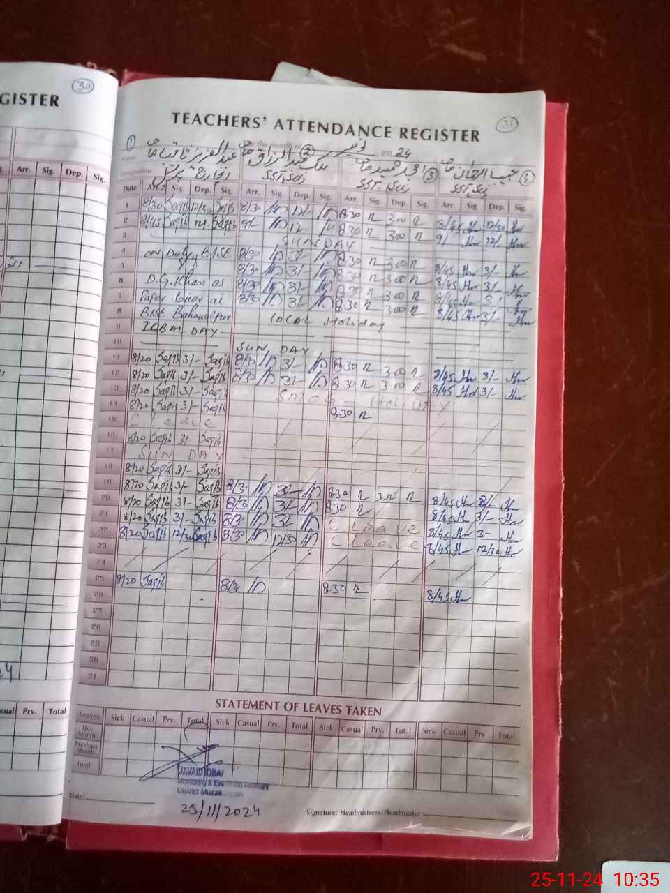 | Leave | Duty | Absent | Maternity | Medical | Ex- Pak |