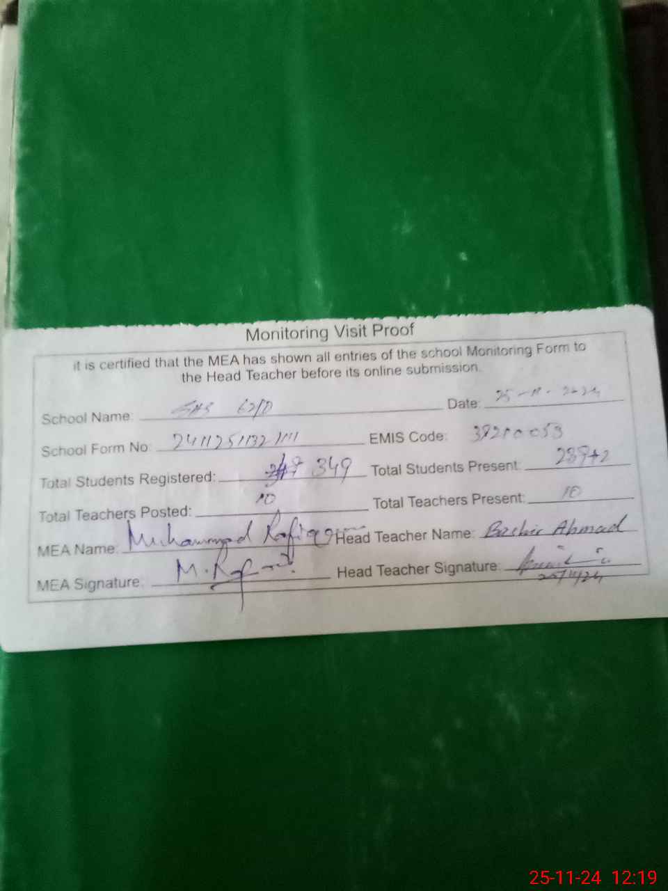 | Certified that this School was Inspected by the Undersigned MEA/DMO Today and the Information Stated Above is as Per Record. | |||||