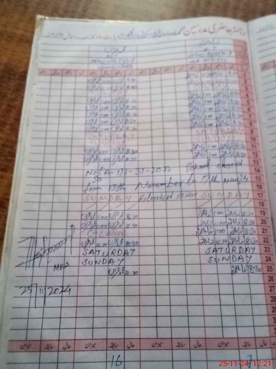 | CNIC | Full Name | Designation | R/C | Absence During Last Calender Month |