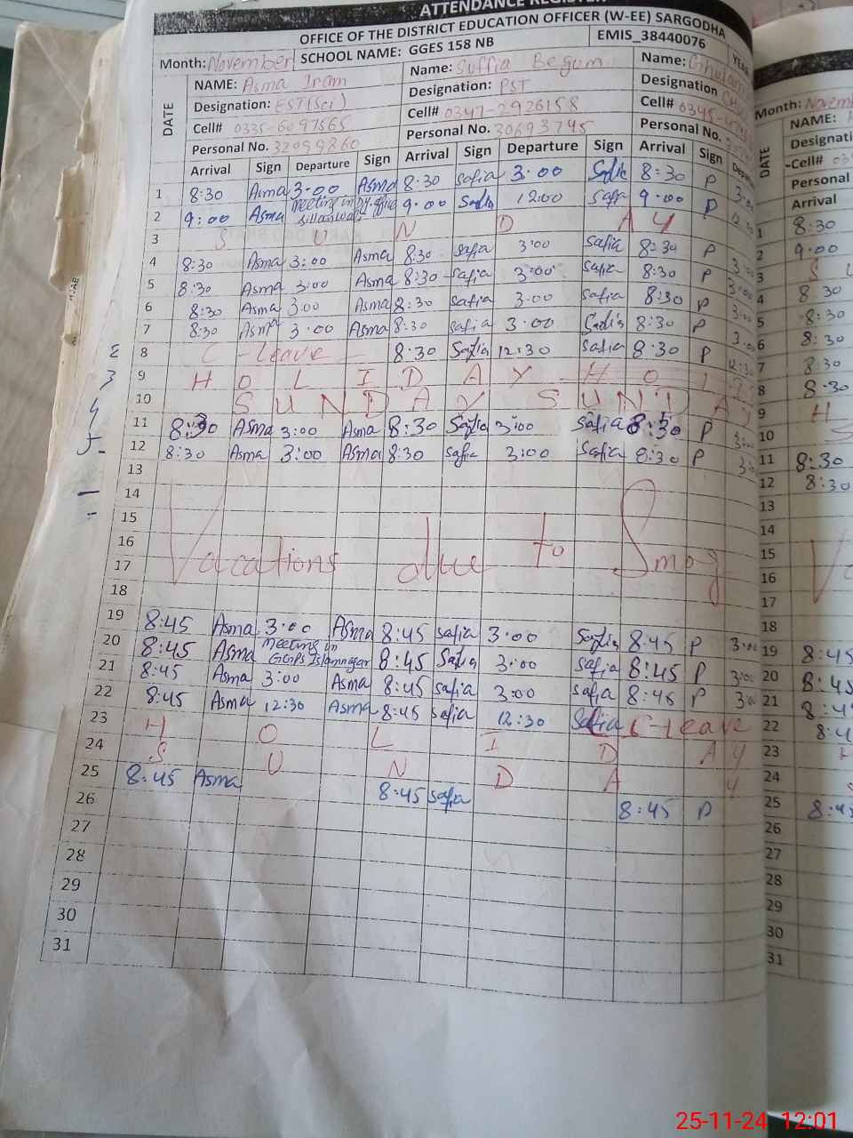 | Name: As**** Ir**** Designation: (School Headmaster's/Headmistress's) EST SCI Phone/Cell Number: 03**** |