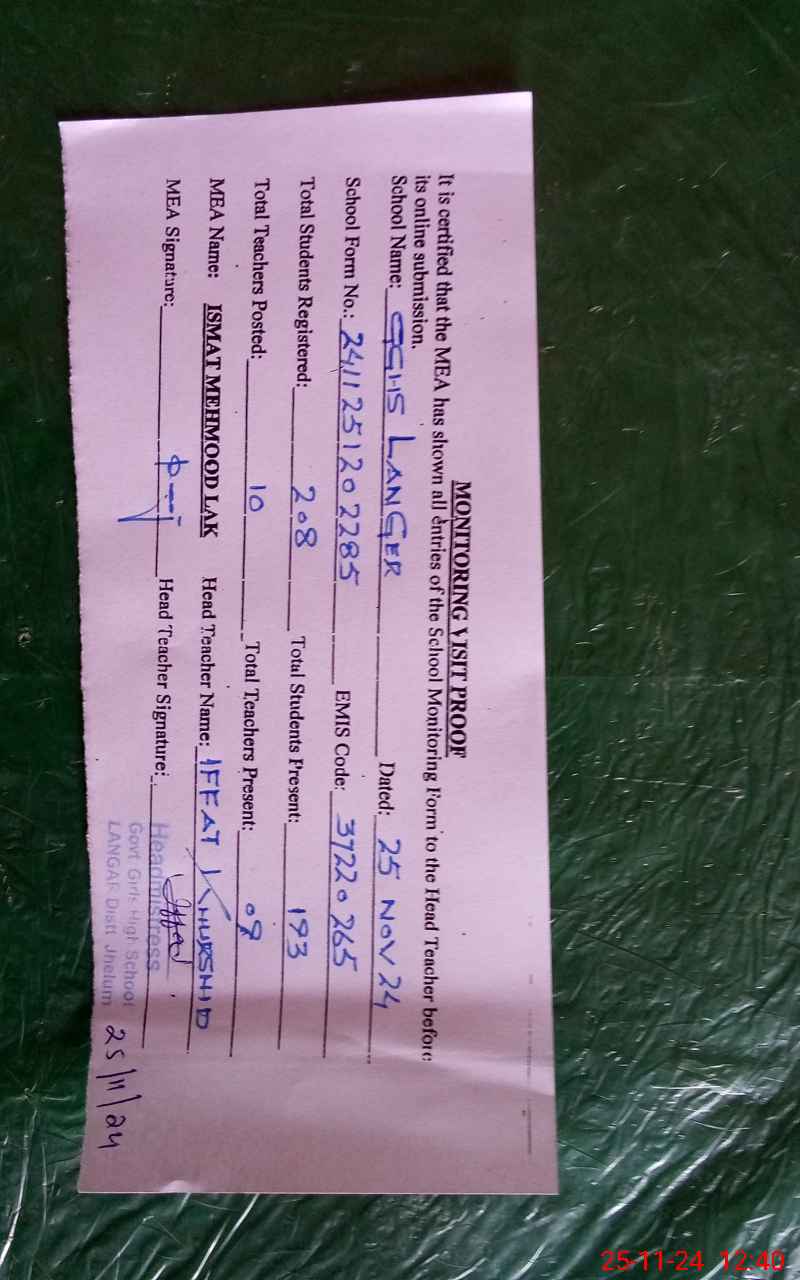 | Certified that this School was Inspected by the Undersigned MEA/DMO Today and the Information Stated Above is as Per Record. | |||||