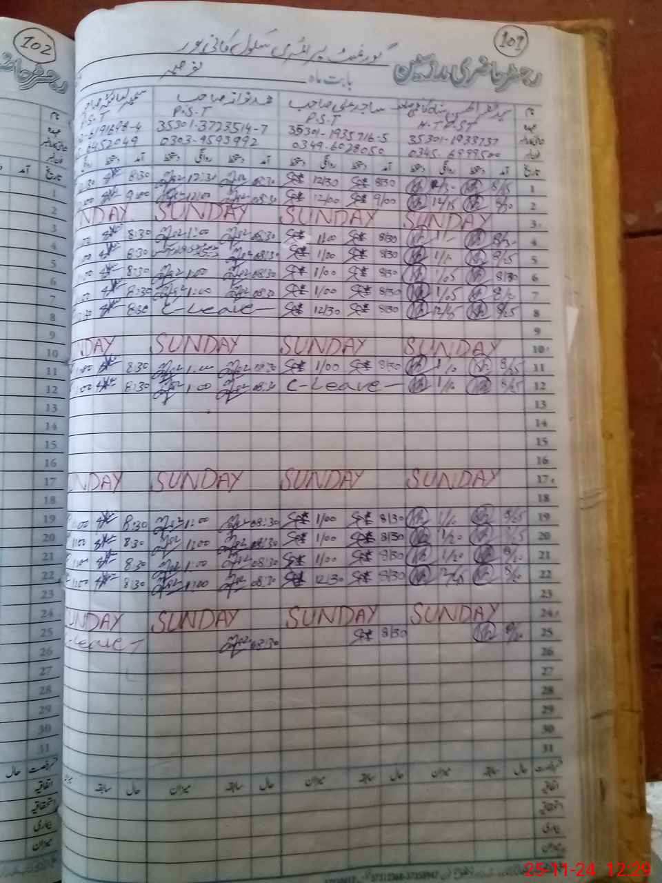 | CNIC | Full Name | Designation | R/C | Absence During Last Calender Month |