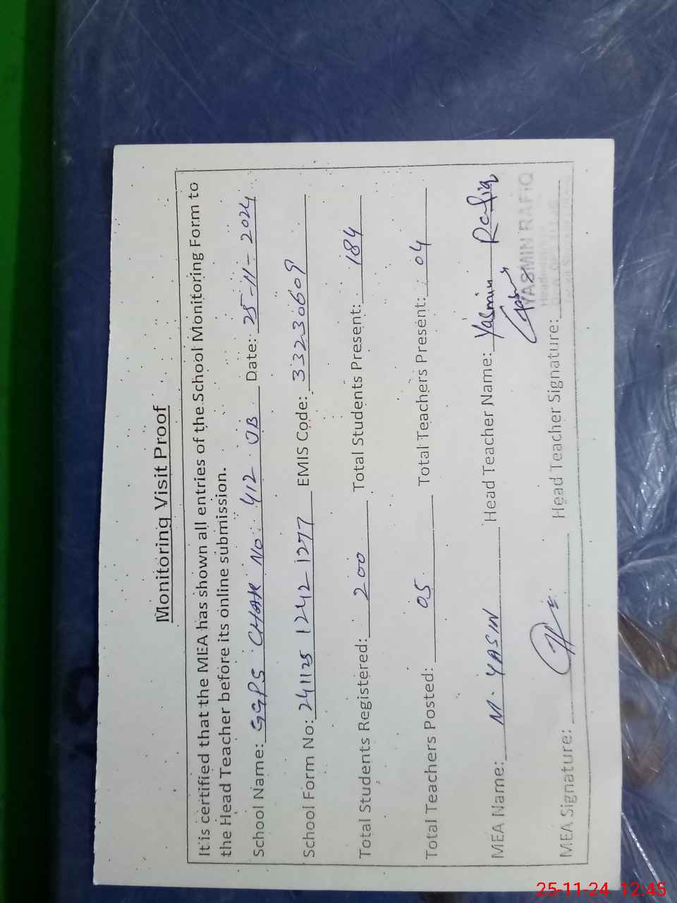 | EMIS Code: 33230609 | Name of School: GGPS CHAK NO 412 JB CHEEMIAN WALA | |||