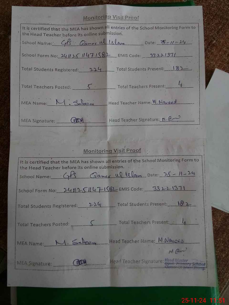 | EMIS Code: 33221371 | Name of School: GPS QAMAR-UL-ISLAM | |||
