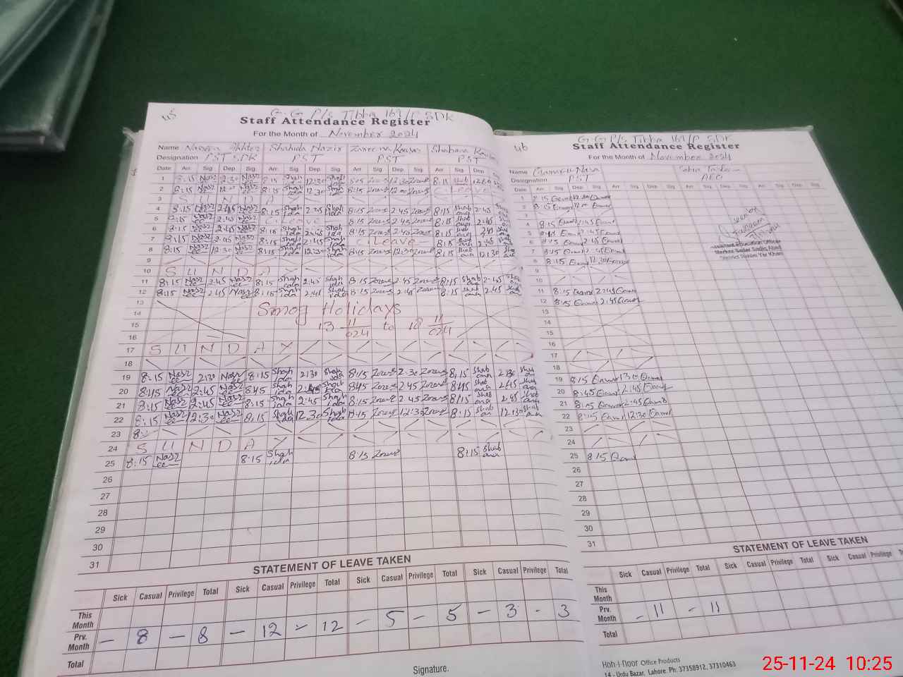| Leave | Duty | Absent | Maternity | Medical | Ex- Pak |