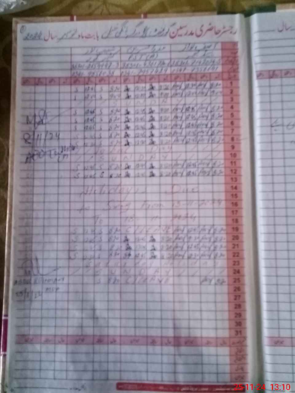 | CNIC | Full Name | Designation | R/C | Absence During Last Calender Month |
