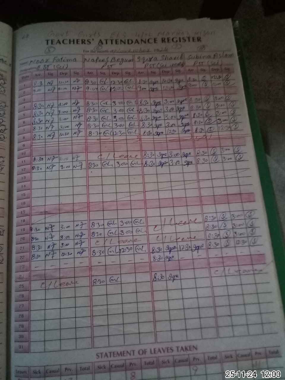 | No. of Students Present - Female | 11 | 0 | 27 | 21 | 26 | 21 | 18 | 18 | 20 | 18 | 23 | 203 | ||||