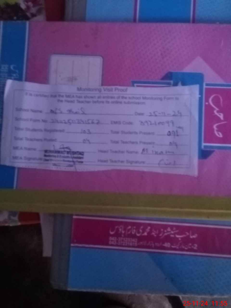 | EMIS Code: 39210099 | Name of School: GPS SOHAIL P/O 27/SP | |||