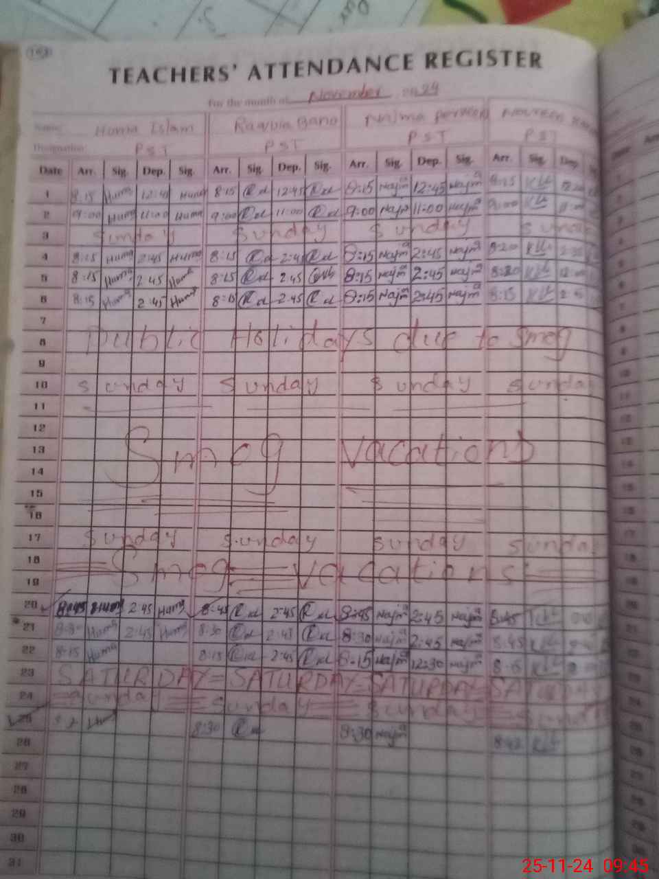 | CNIC | Full Name | Designation | R/C | Absence During Last Calender Month |