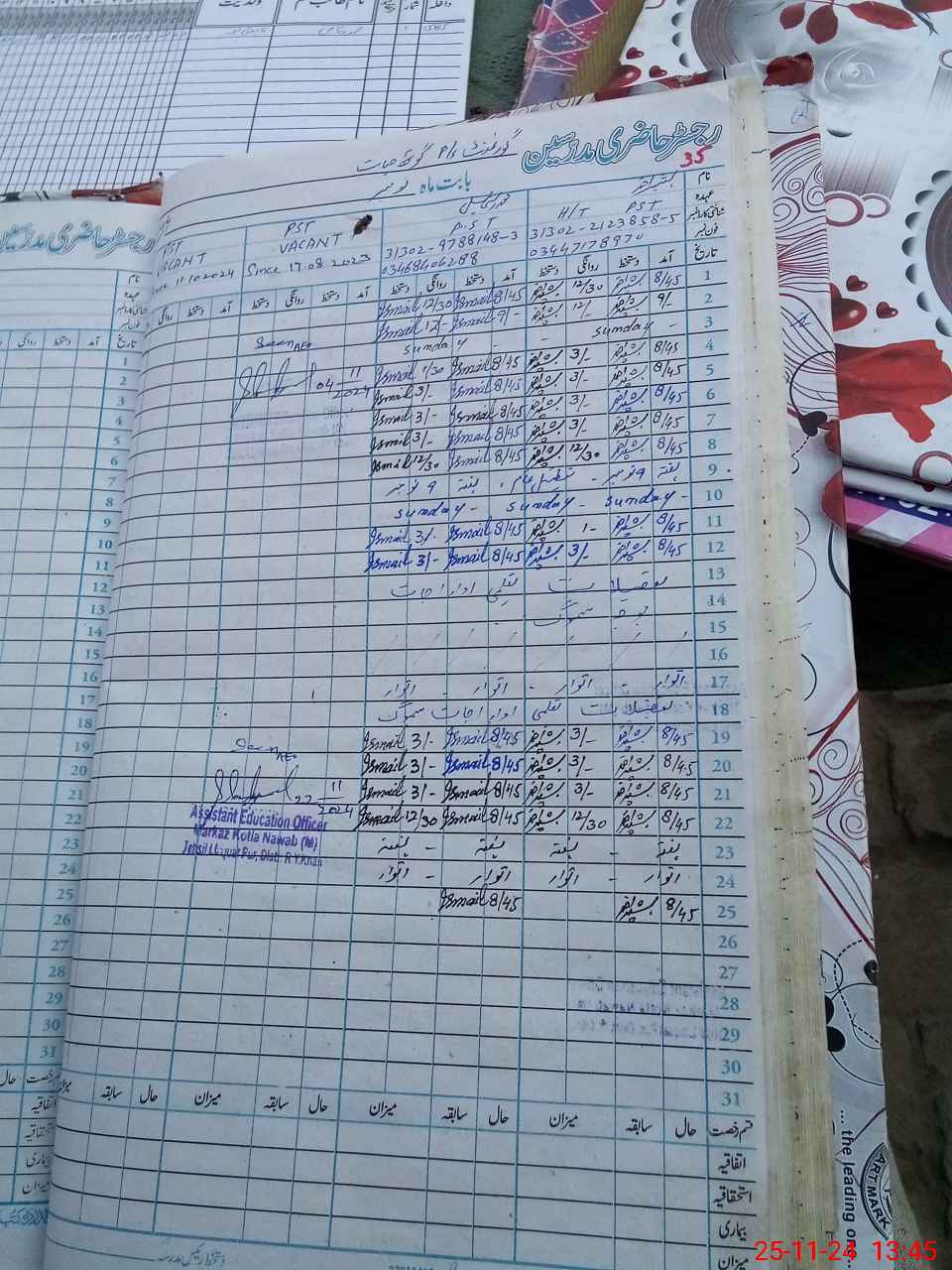 | Name: NI**** AH**** Designation: (School Headmaster's/Headmistress's) PST/PTC/JV Phone/Cell Number: 03**** |