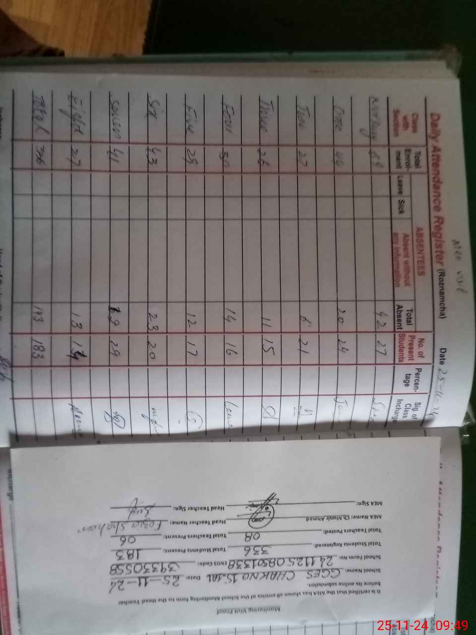 | Attendance Register | Head Teacher | MEA with School | Visit Proof |