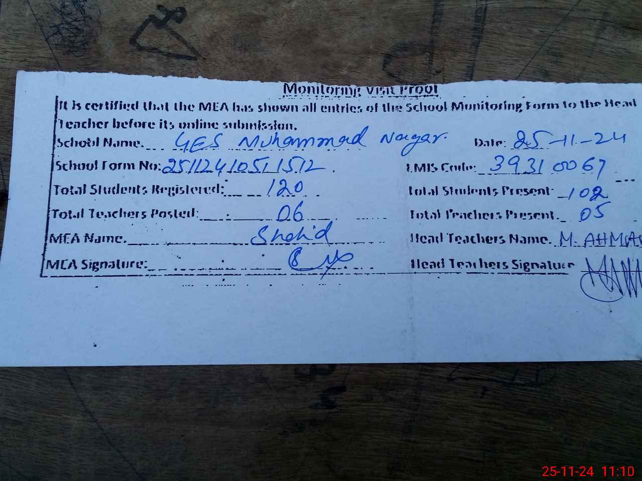 | EMIS Code: 39310067 | Name of School: GES MOHAMMAD NAGAR LADHUKA | |||